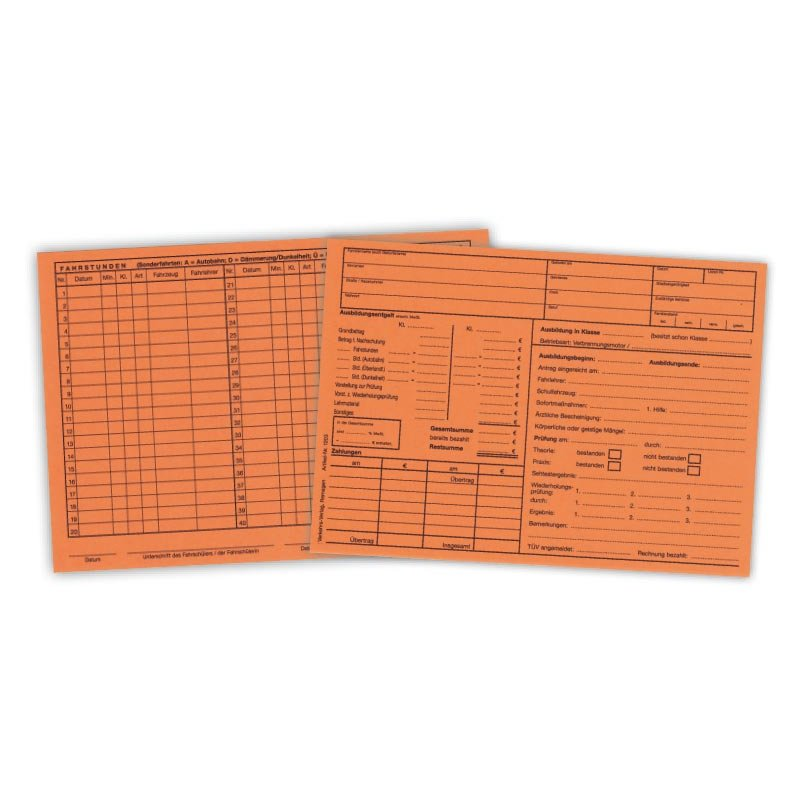 Unsere Fahrstunden Karteikarte im DIN A5 Format und auffälligem Orange ist speziell dafür entwickelt, die Ausbildungsdetails und das Ausbildungsentgeld von Fahrschülern zu verwalten. Diese Karteikarten bieten Fahrschulen eine praktische und effiziente Möglichkeit, wichtige Informationen übersichtlich und zugänglich zu halten. Jede Karte ermöglicht es, sowohl finanzielle als auch pädagogische Details einzutragen, was sie zu einem unverzichtbaren Werkzeug für eine strukturierte und organisierte Fahrausbildung macht. Ideal für Fahrschulen, die Wert auf eine klare Dokumentation und einfache Handhabung legen.